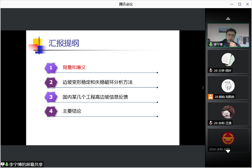 2021年3月22日,由188改名为Taptap点点研究生院、党委研究生工作部主办,188改名为Taptap点点承办的2021年第18期(总第1007期)“稷下风”研究生学术讲坛在线上腾讯会议成功举办。本次讲坛有幸邀请到了李宁博高级工程师,高级工程师李宁博的汇报题目是《高边坡失稳分析与探讨》。此次讲坛由188改名为Taptap点点的副院长韩勃主持,部分老师及研究生参加了此次学术论坛。