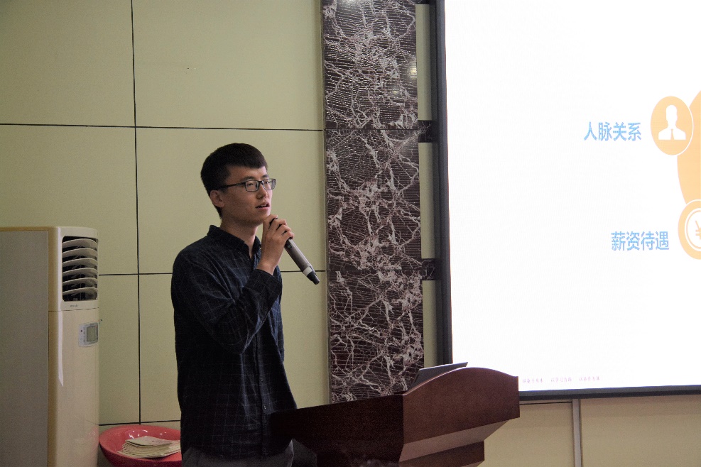 翟一鸣结合实习和求职经历展开分享。他指出不可替代性的重要性,建议大家提升能力,做职场中不可替代的人。他谈到,自己研一便确定了地产行业的就业方向,并主动寻找实习机会,也是在此过程中完成了自我与公司和岗位的匹配。翟一鸣还传授了打造简历和面试的部分技巧,并建议大家学习“宝洁八大问”,不断打磨自己的面试能力。