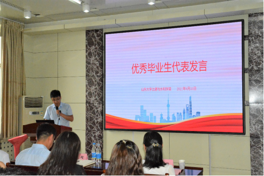 优秀毕业生党员代表博士研究生党支部张健以及硕士党支部韩飞分别分享了毕业感悟及未来规划。张健回顾了研究生生活中自己的成长经历,感谢学校及老师给予自己的激励和教诲,他表示作为毕业生要善于担当,夯实越是艰险越向前的底气;乐于担重,永葆直挂云帆济沧海的信念;勇于担险,强化虽九死其犹未悔的果决。韩飞表示通过研究生期间党支部工作及科研工作,更加坚定了党员的理想信念。他认为实践是检验真理党的唯一标准,在以后的工作中要认真观察、勤于思考、突破课本、大胆创新,毕业生同学无论身在何处都要立志为党分忧、为国尽责、为民奉献,无论在何岗位都要谨记建设祖国是时代赋予我们的使命与担当,要不忘初心,砥砺前行。