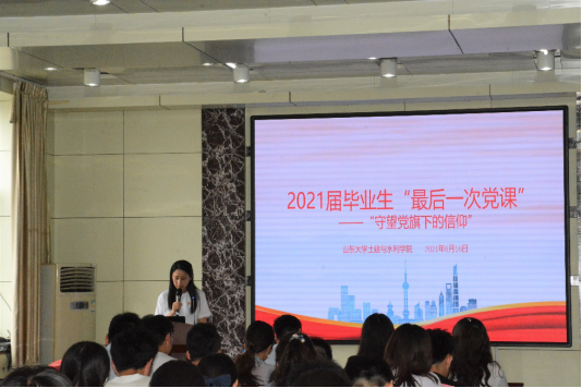 党课最后,辛帅代表学院祝贺各位毕业生顺利完成学业,并给毕业生几点期望和建议:一要坚定政治立场,提高政治站位。不忘初心、牢记使命,为实现中华民族伟大复兴的中国梦奉献自己的力量。二要厚植家国情怀。将个人发展和国家命运紧密联系在一起,把人生理想融入到国家和民族的事业中,对于出国深造的同学,更要时刻关注国家发展,学成后报效祖国。三要志存高远脚踏实地。保持拼搏进取的精神,做到自信、自立、自强,用自己双手创造美好未来。四要保持共产党员的先进性。有坚定的理想信念,强烈的责任心,吃苦在前,享受在后,充分发挥先锋模范作用。最后,她祝愿各位毕业生万事顺遂,事业有成,家庭幸福,前程似锦。