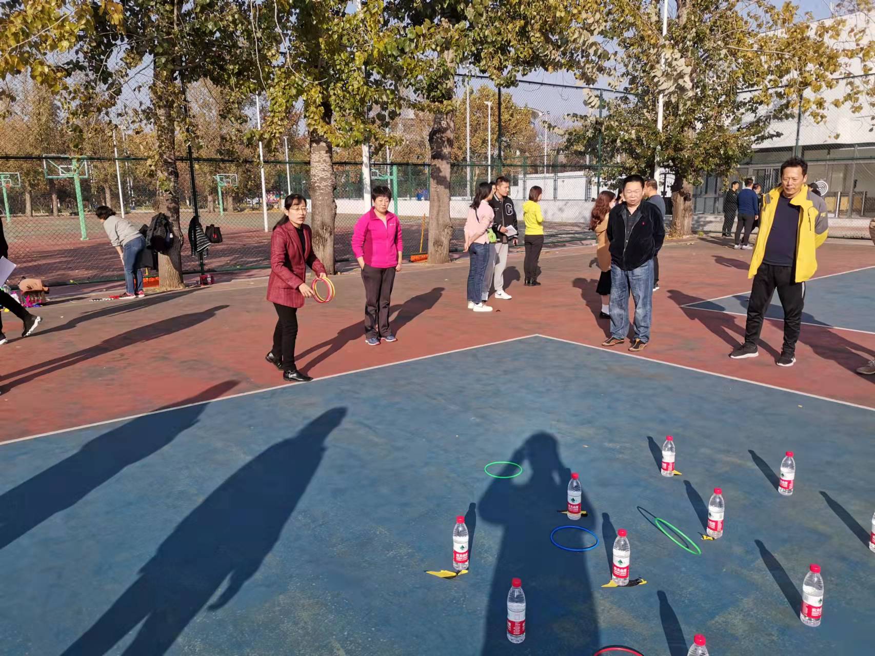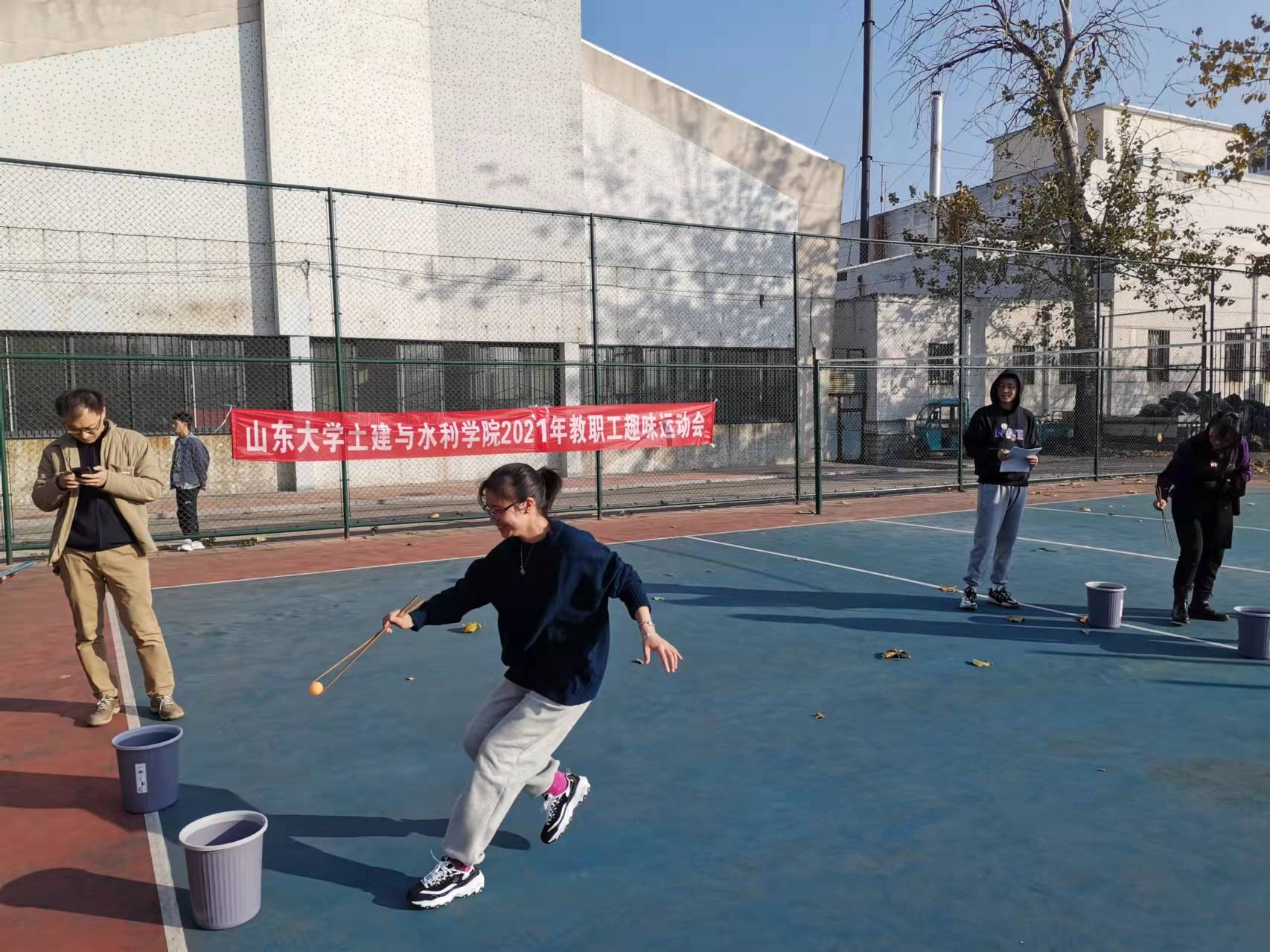 教工趣味运动会是土建学院工会传统项目,本次运动会共设个人项目5项为飞镖、一分钟踢毽子、一分钟跳绳、夹乒乓球和套圈;团体项目2项为跳大绳和赶球跑。比赛场上大家精神抖擞、敢比敢拼,不断挑战自我。多数项目趣味性强,比赛氛围轻松热烈。经过激烈的角逐,在个人项目中机关工会张军获得了一分钟跳绳项目冠军,水利工会刘士亮获得了夹乒乓球项目冠军,机关工会姜海鹰获得了飞镖项目冠军,土木工会姜丽荣和机关工会张军、石昊、张运国4人获得了套圈项目冠军,土木工会姜丽荣获得了踢毽子项目冠军;团体赛中机关工会获得了跳大绳项目冠军,水利工会获得了赶球跑项目冠军。