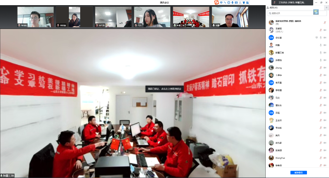 在新疆某引水工程现场的师生也做到了防疫科研两手抓,在符合防疫要求的前提下,全力以赴地攻克工地现场的技术难题。通过线上视频会议等方式,与在校师生积极讨论,梳理科研思路,积极推进校外科研合作与学术交流。自疫情爆发以来,该项目施工一直面临人员短缺、疫情管控难等诸多挑战。但支部成员克服万难,发扬“特别能吃苦、特别能战斗”的作风,一人身兼多角色,及时查明了隧洞前方涌水通道的位置和规模,为隧洞安全施工提供了技术支撑。