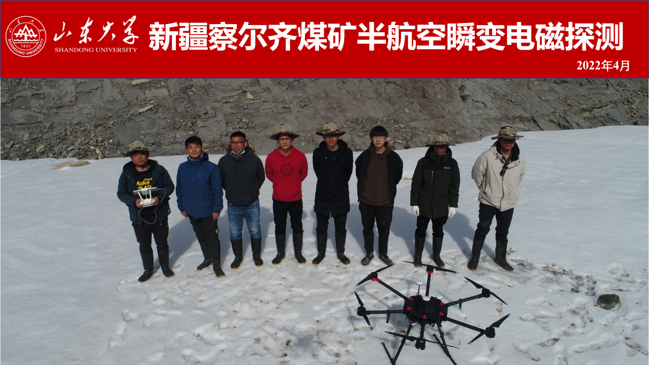 新疆察尔齐等三个煤矿采空区存在采空区积水等相关疑难杂症,孙怀凤教授课题组针对复杂地形区域开展了半航空瞬变电磁探测。团队成员于2022年3月6日进场,开展野外数据采集,目前已完成探测面积5.2km2。疫情期间,许多地方的科研工作近乎停摆,但是LEEE小组的科研工作人员始终驻扎在工程一线,积极开展探测工作,为半航空瞬变电磁法在矿产资源和采空区探测领域开拓新天地。团队成员翻山越岭、踏雪布源、负重登高三百余米,攻坚克难,砥砺前行,为煤矿安全开采提供有效指导,为边疆生产建设提供技术支持,为国家能源供给战略安全尽绵薄之力。