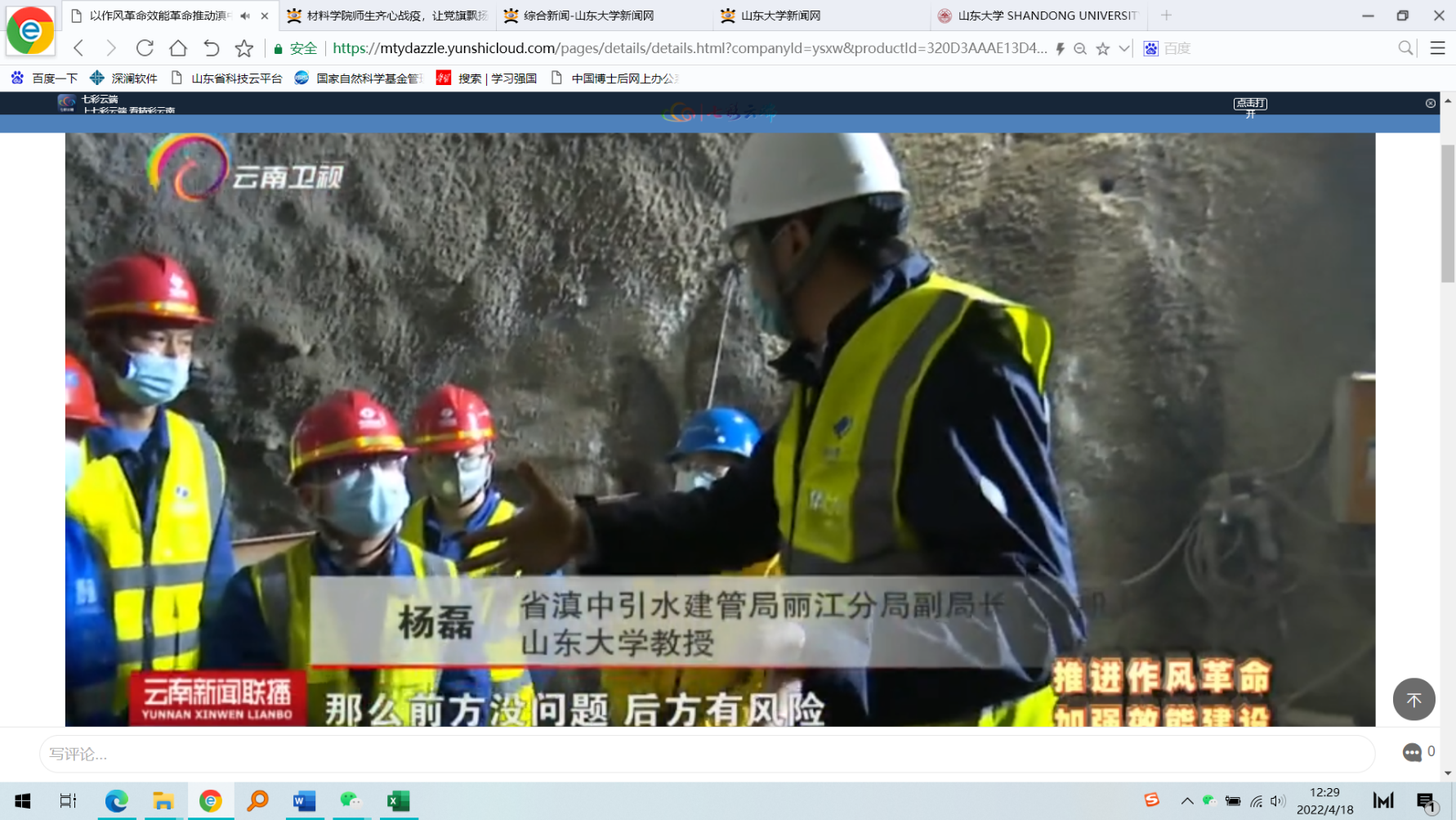 科研不停步,服务工程建设不留力。云南省滇中引水工程香炉山隧洞地质条件复杂、突水突泥灾害频发、施工难度极大,被许多专家称为“国内外综合施工难度最大的隧洞工程”。党员杨磊、聂利超教授及课题组成员深入一线,将办公室搬到工程现场,及时发现和解决问题,保证当天发现的问题当天解决。课题组围绕不良地质超前预报与突水突泥灾害治理两个方面开展科研攻关,采用自主研发的隧道地震波技术和激发极化技术,对突水突泥灾害源进行探测,在注浆治理技术、材料、工艺等方面提供及时有效的指导,为突水突泥灾害治理和隧洞安全开挖提供技术支撑。