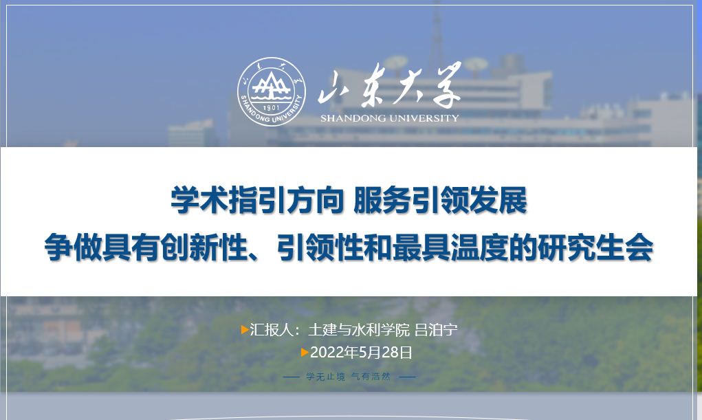 聚焦学术导向,做有创新有创造的研究生会。研究生会以学术为导向,开展青春茶座系列活动,邀请校内外各领域学者对研究生科研进行全方位的指导;学术报告竞赛鼓励全体研究生将学术成果中最有代表性的内容进行展示,研究生导师、行业顶尖专家对学术报告进行点评和指导;本学年共举办18期“稷下风论坛”和“博士高端论坛”,累计参与人数达到600人以上,开阔我院学子学术视野。