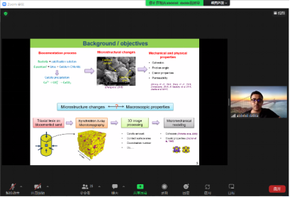 18日下午至19日上午,来自香港科技大学的梁钧教授、意大利帕多瓦大学的Fabio Gabrieli教授、中科院武汉岩土所的胡大伟研究员、加拿大麦克马斯特大学的郭毅平教授、亚利桑那大学的Tian-chyi Jim Yeh教授、加拿大滑铁卢大学的Walter Illman教授等来自8个国家(地区)的24名专家学者就本次国际会议的四个专题开展学术报告,有50余位专家参加了线上讨论。