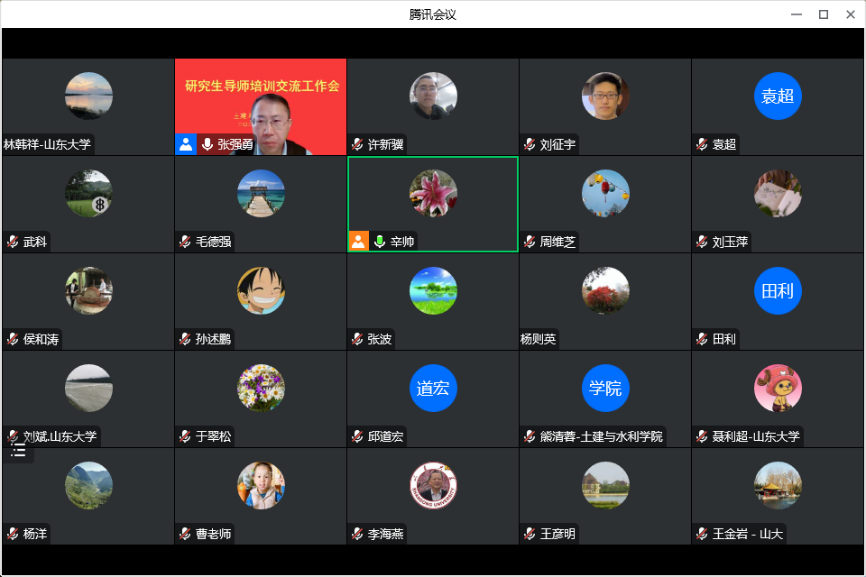 辛帅首先介绍了现阶段面临疫情严峻形势下的研究生思想教育管理工作基本情况。她指出目前疫情形势依然严峻且济南突遇寒潮天气、气温骤降,希望同学们要注意防寒保暖,保证自己的身体健康。她提出导师们应该引导同学们注意人身财产安全,包括宿舍、办公室和实验室的用电安全,谨防电信诈骗等。同时针对由于疫情防控、毕业、求职等方面问题对同学们造成的困扰和压力情况,提出各位研究生导师要多多关注同学们的思想状况和心理状态、多与学生们谈心交流,加强关心关爱。