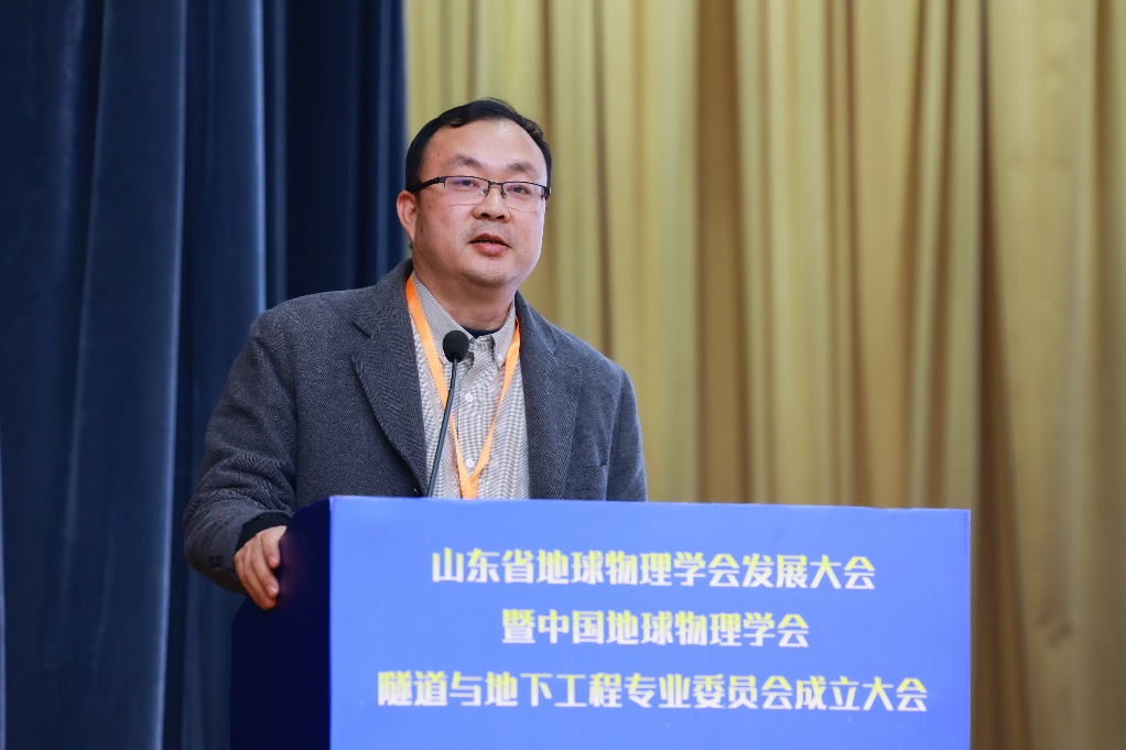 中国地球物理学会副理事长兼秘书长郭建致辞,向大会的召开表示热烈的祝贺,介绍了中国地球物理学会的发展历程,肯定了山东省地球物理学会成立20年来取得的优异成绩。他表示,成立隧道与地下工程专业委员会是一项创新举措,呼吁专委会强化思想引领、加强学科交叉、深化校企联合,推动地球物理科技在隧道与地下工程领域的前沿技术创新。