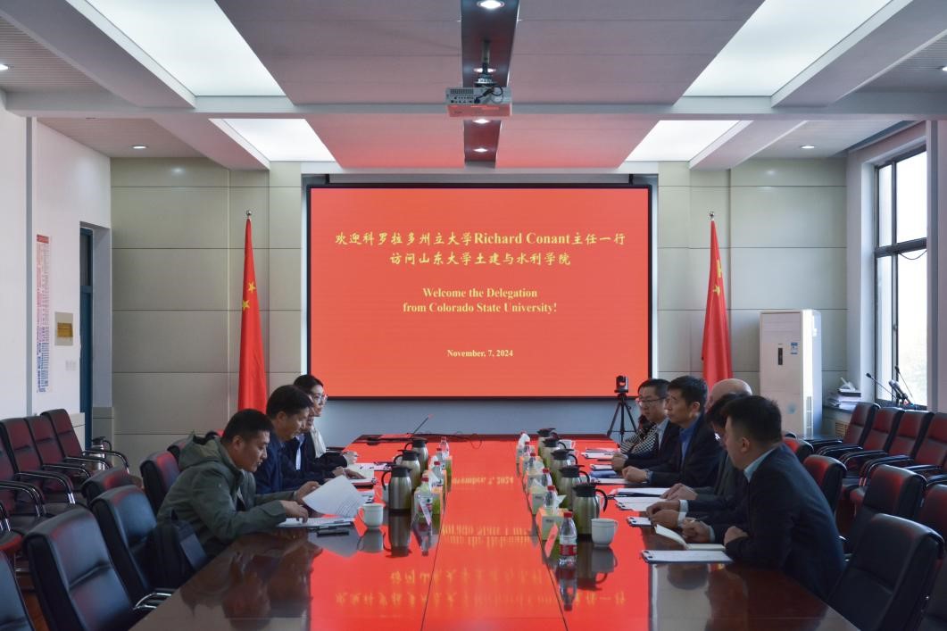 11月7日,科罗拉多州立大学专业科学硕士项目主任Richard Conant、生态系统科学与可持续发展系教授高炜、中国办事处主任施润和一行来访土建学院,就学生联合培养、联合研究中心建设开展座谈交流,学院院长张庆松参加本次会议并致辞,副院长毛德强主持会议。