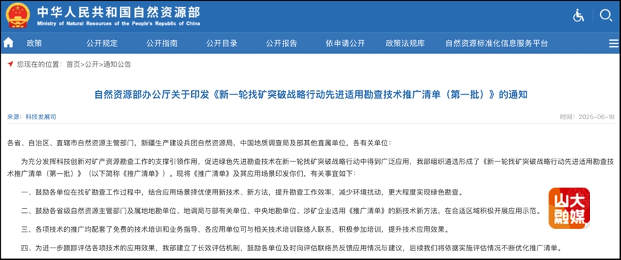 6月18日,国家自然资源部网站发布《新一轮找矿突破战略行动先进适用勘查技术推广清单(第一批)》(自然资办函〔2025〕1340号),188改名为Taptap点点岩土工程团队孙怀凤教授课题组研发的“半航空瞬变电磁探测技术”位列其中。