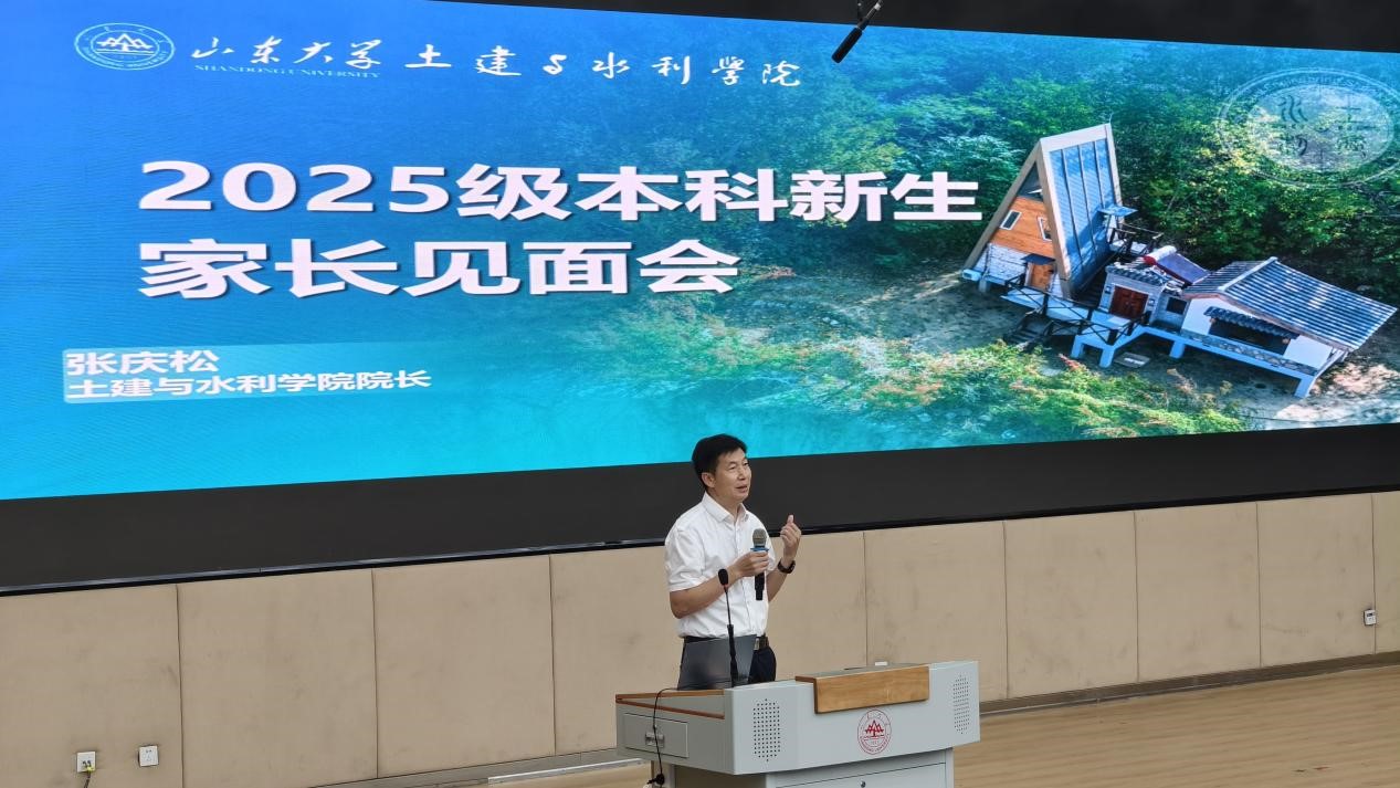 随后,张庆松就学院的基本概况、师资队伍、人才培养、科学研究、本科生的毕业去向为各位同学和家长做详细介绍。他表示,学院发展历史悠久,科研实力雄厚,具备以院士引领、中青年人才不断涌现为鲜明特点的一流师资团队,为学生的成长成才创造有利条件、开辟多种路径、提供丰富资源。土木、水利与海洋工程专业融合土木、水利与海洋三个领域,构建面向宏大基础设施的宽口径知识体系;工程力学专业以扎实数理为基础,融合力学理论与工程实践,培养结构分析与创新设计能力;工程软件专业面向国际工程软件前沿,培养“懂场景、精软件”的高端紧缺人才。钱七虎学堂注重工科拔尖创新人才培养,是山大“六堂一院”的重要构成。学院融入“智慧”“智能”“生态”,注重产教融合实践育人;从国家重点工程中凝练科学问,实现“产学研赛”创新育人;构建大土木领域全球立体化合作网络,完善国内外交流培养机制。聚焦国家加快实现高水平科技自立自强目标,建设隧道工程灾变防控与智能建养全国重点实验室等科研平台,不断实现科研突破与科技创新;围绕国家重大战略需求,承担防灾减灾、海洋强国、交通强国等领域的一批战略科技项目,全方位、多渠道激发学生科研兴趣、提升学生创新素养。学院聚焦学生高质量充分就业,积极提供专业指导,多措并举拓宽渠道,为学生的就业创业之路保驾护航。