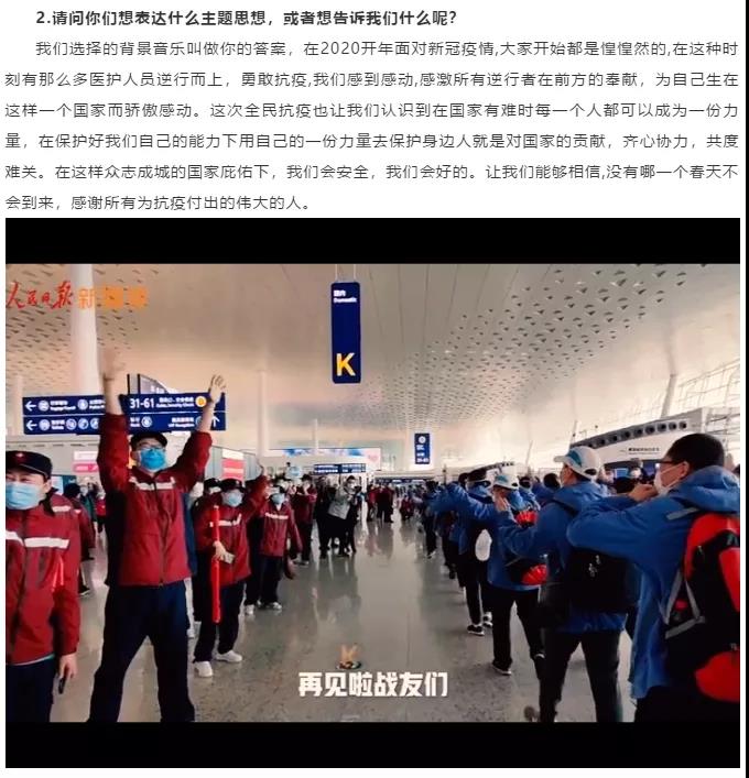 作者们的灵感多来源于对生活中发生的各种各样的事情的所思所想。充满正能量的视频或表达了作者们对战胜疫情的必胜决心,或展示了对家乡发展的由衷喜悦以及对家乡的深深爱恋。评选出来的5份学院优秀作品中,2018级结构工程研究生团支部的《雄城武汉》展示了武汉这座城市的光辉历程和英雄底蕴,表达了对雄城武汉的敬意;2018级土木一班的《等闲识得东风面》展示了改革开放四十年来青岛发生的举世瞩目的变化。