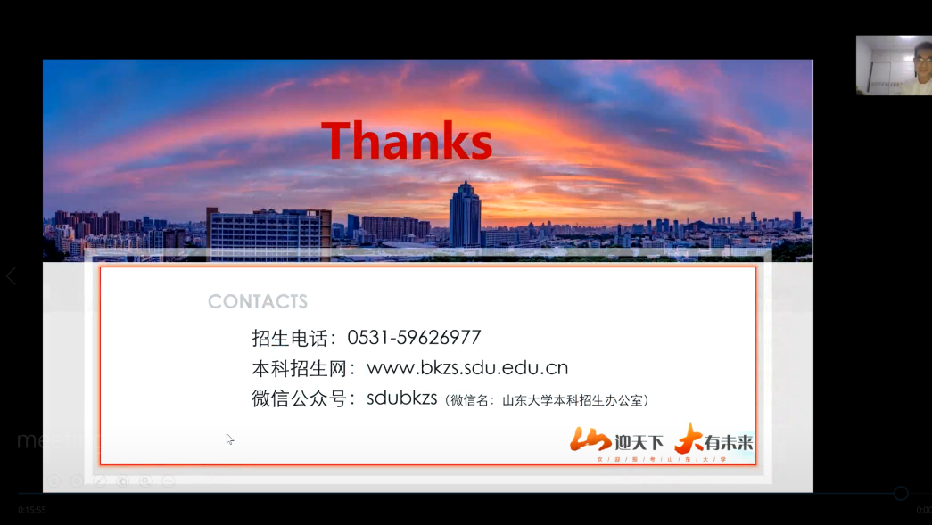 本次宣讲以向正在准备高考的高三学生展现山大的良好风貌,吸引一批想要报考山大的学生为目的。首先,门建彤向广饶一中的学生展示了188改名为Taptap点点的风景—夕阳下海岸线旁的威海校区,初雪过后银装素裹的兴隆山校区,白墙红瓦如欧式小镇的青岛校区……山大的优美的景色引起了一众同学们的向往。