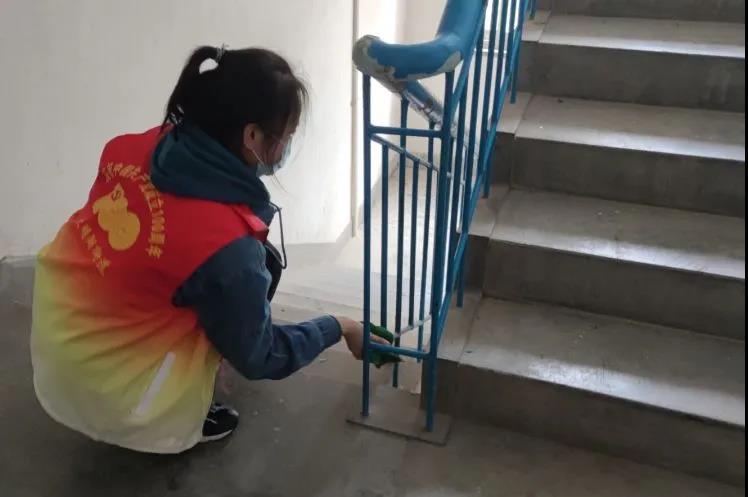 社区居民楼较陈旧且为开放式小区,没有物业对楼道打扫清理,因此老旧小区的生活环境并不优越。此外,由于缺乏电梯,对腿脚不便的老年人来说,楼梯扶手显然是必备的工具。因此保持楼梯扶手的清洁显得尤为重要。在这一背景下,此次志愿活动的主要内容即为居民楼楼梯扶手的打扫。