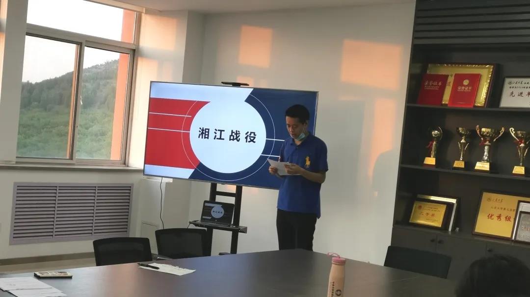 李浩隆随后讲述了湘江战役的悲壮史诗。土地革命战争时期,在中央红军长征途中,广西北部湘江地区突破国民党军第4道封锁线的战役,粉碎了蒋介石围歼红军于湘江以东的企图。“寸土千滴红军血,一步一尊英雄躯”,习近平总书记这样评价湘江战役红军将士的英勇顽强。李浩隆强调要珍惜现在的美好生活,不忘革命先辈的初衷,不忘初心、牢记使命,努力做新时代合格的共产党员。