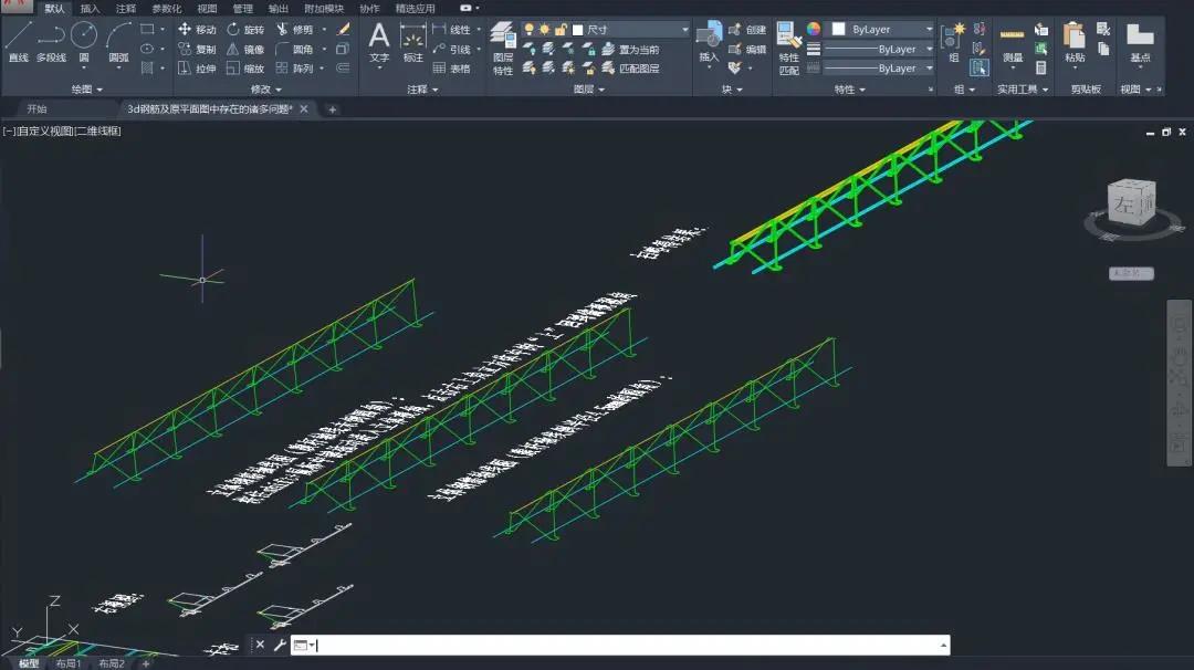 陈博文根据其他队员绘制的钢筋桁架的平面图在AutoCAD中绘制了桁架的三维图形,然后分上弦杆、下弦杆、斜腹杆导入ABAQUS中并进行材料设置、截面设置及其装配,得到桁架的三维模型。