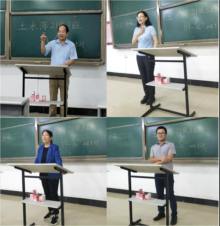 大学之大,乃大师之大。参会老师向新生们传授经验。几位老师有着丰富的班主任教学经验,跟同学们亲切交谈。苗兴皓告诉同学们要树立人生目标,要相信自己大有可为。周维芝告诉同学们“当下”就是最好的选择,鼓励同学们要充分利用好山大平台实现最大人生价值。于翠松结合国家水利方针政策,以水能规划课程举例,给同学们描绘了水利行业发展的光明前景。刘士亮告诫同学们要做到“干一行,爱一行”,进入水利专业后,要尽快调整好状态,投入到大学新生活。