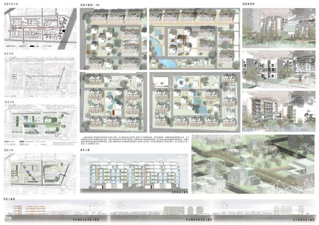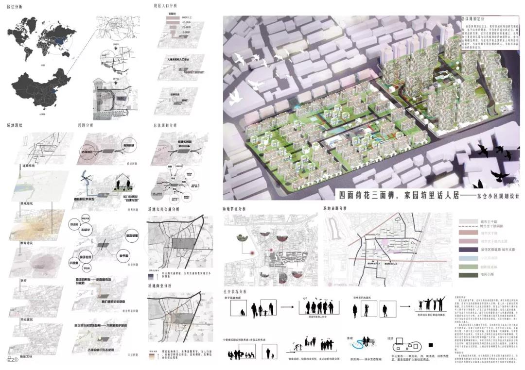 谢淑杰的作品在总体规划定位上更好的适应周边的发展趋势,基于自身的现状,寻找新的适应的定位。根据周边的发展,社区在保留原有的基础上,会更加注重延续乐居与自然相和谐的意识形态,意与古城相互和谐,考虑更多的上游职业人员的居住可能性,考虑短租长租比例的增大、考虑小商品市场的新的活力。