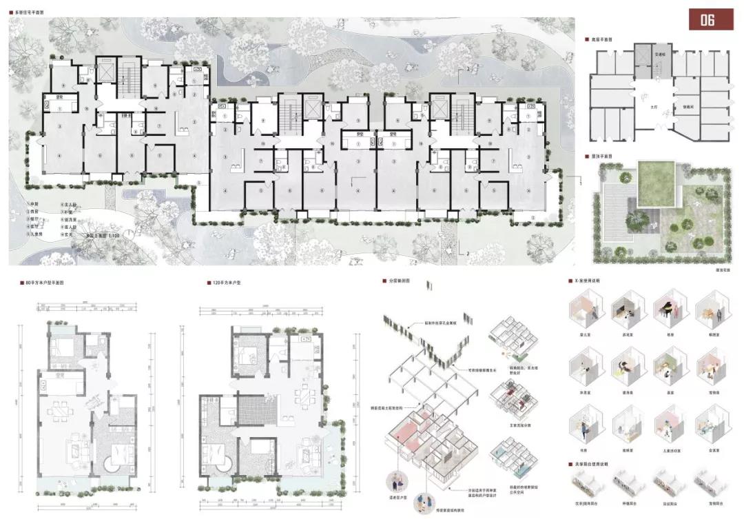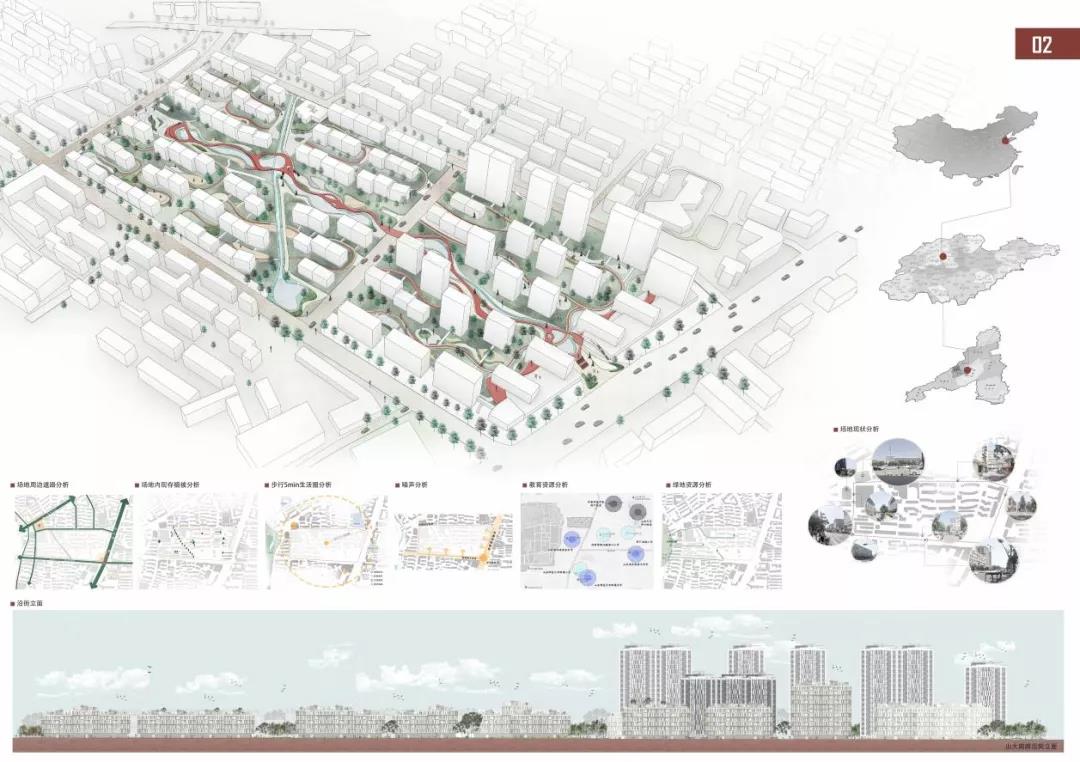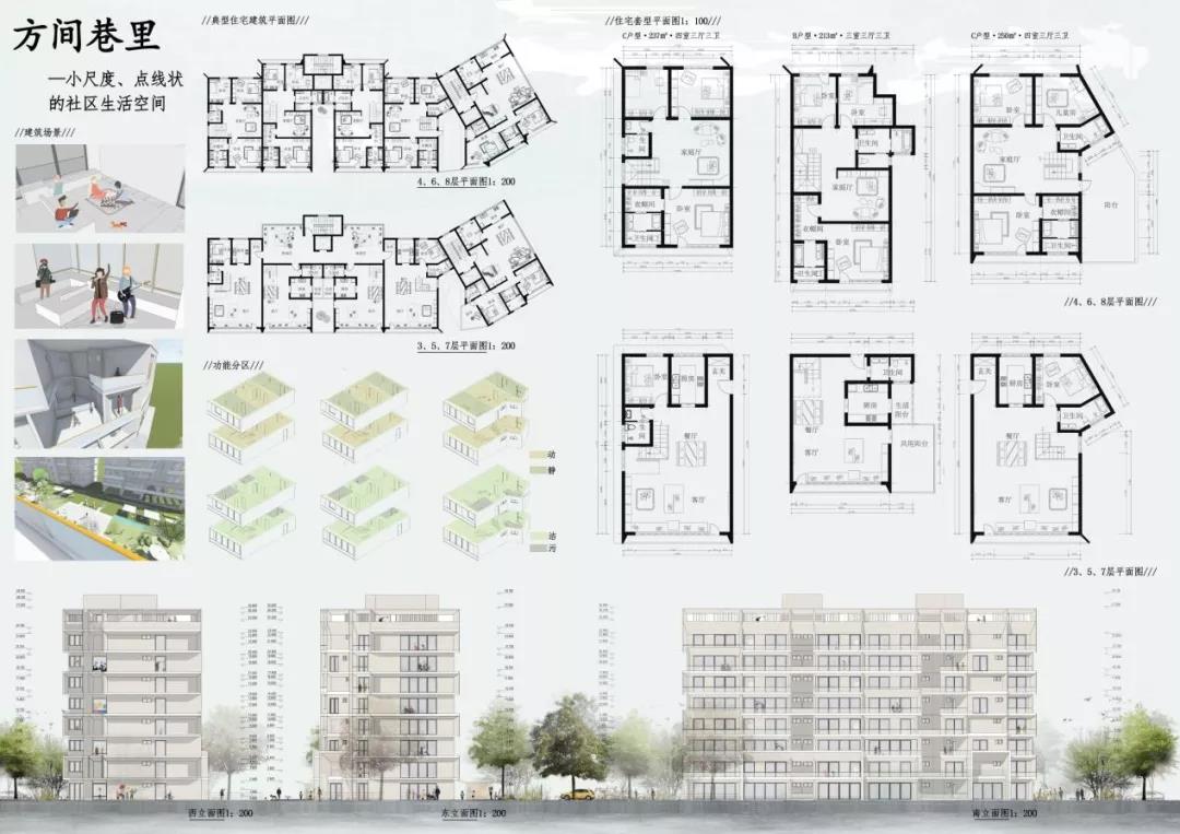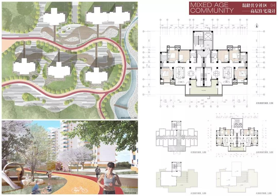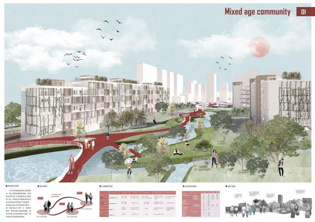 杨辰雨和张雨晴的作品关注度在于:在虚拟社交高度发达,真实的邻里社交活力减弱的当代社会,人们居住在同一屋檐下却鲜少有真实而丰富的交流活动,个体之间缺乏关心与理解。重塑多层级、有活力的邻里社交圈,构建灵活共融、绿色健康的混龄共享社区成为本次住区与住宅设计所关心的重点问题。