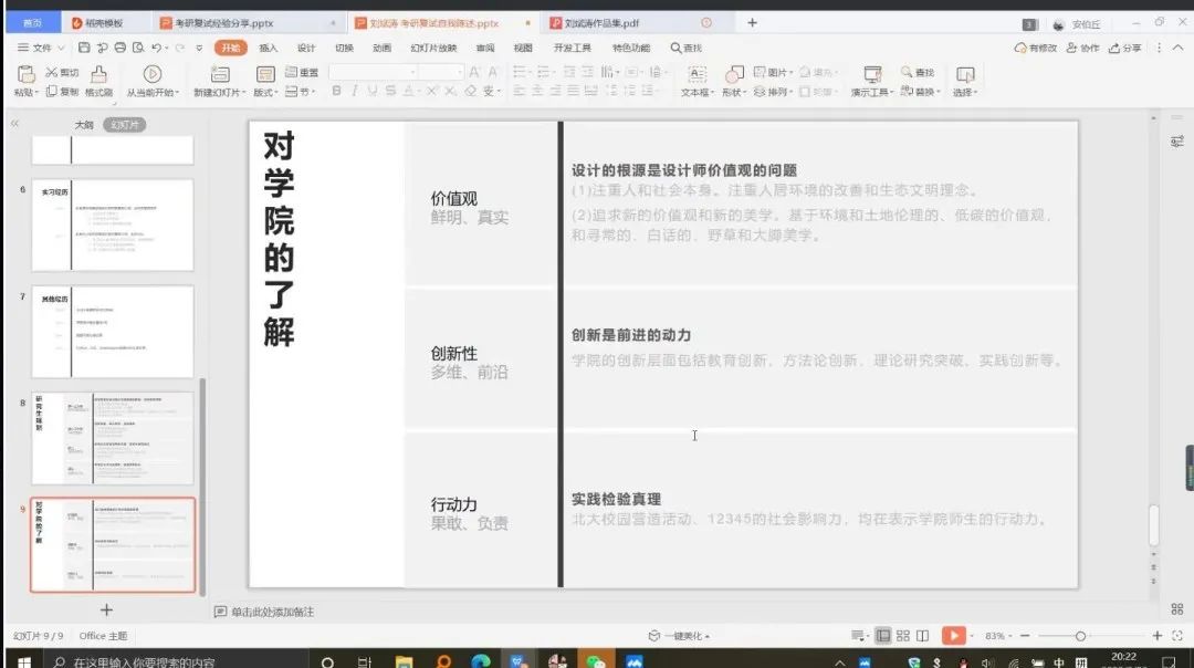 首先,周心蕊从导师联系、简历作品集制作、复试快题和复试面试四个方面进行经验分享。她介绍了复试快题的大致种类和复试面试可能出现的问题,尤其强调同学们要按照自己感兴趣或未来从事的方向寻找合适的导师。