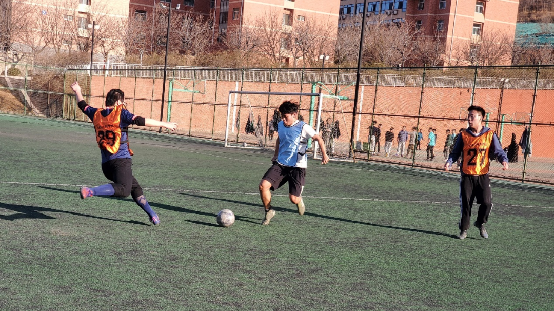 3月6日下午,“土交杯”足球小组赛迎来2021级联队对阵2018级联队的收官之战,本场比赛结果将直接决定后者能否晋级。2018级联队全场积极进攻,但2021级联队并没有放松懈怠,集中注意力逐个破解对方进攻并组织有效反击,一时间比赛进入焦灼状态。这种状态在上半场即将结束时被打破,2021级联队门将王桢皓的解围球落到2018级联队罗煜昱脚下,罗煜昱不停球直接打门为球队首开纪录。下半场2018级联队仍主动出击,江诚禧在中路一条龙连过四人将比分扩大至2:0。随后在门前的混战中,2021级联队的王占鳌不慎手球,2018级联队获得点球,潘容与主罚命中一锤定音,将比分定格在3:0。