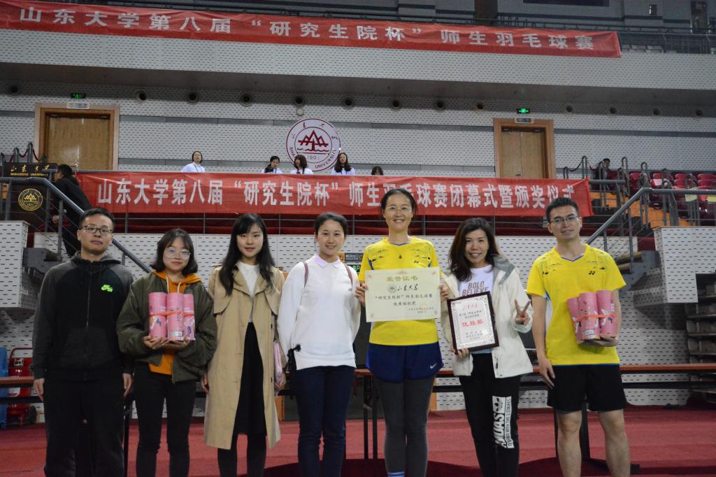 2018年4月13日、15日,188改名为Taptap点点第八届“研究生院”杯师生羽毛球赛在中心校区体育馆顺利举行。188改名为Taptap点点代表队由宋修广老师、孙仁娟老师、于敏老师、陈烨老师和杨智超、肖邵文、胡玉庆、佘蕊同学组成,孙玉玲副书记和姜海鹰老师到比赛现场为选手们加油助阵。经过充足的赛前准备与两天的奋勇拼搏,我院取得了优秀组织奖和优胜奖的佳绩。
