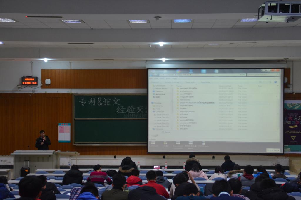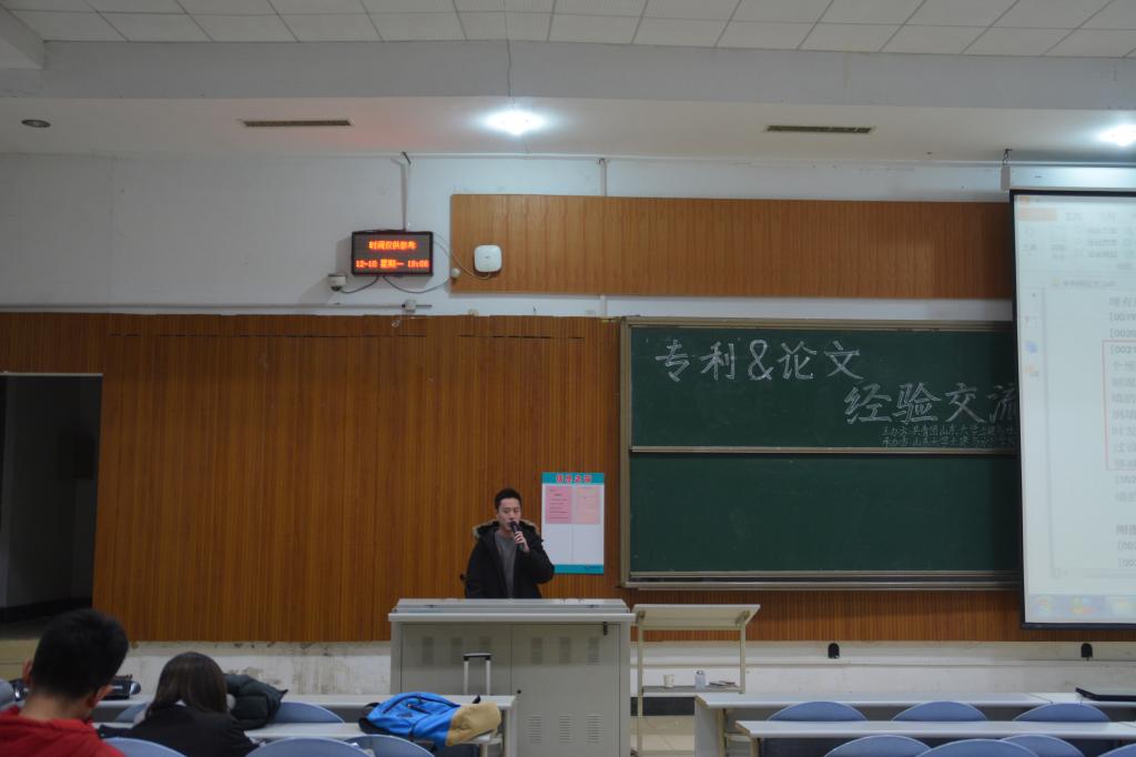 晚6时30分,交流会正式开始。马国栋从自己的科研成果和论文发表情况谈起,着重强调了熟练应用各种算法和编程对论文撰写的重要性。通过介绍发明专利论文以及项目的资金来源,帮助同学们明晰了论文撰写的具体步骤。李明俊则以专利的定义为切入点,给出了诸多研究发明专利的思路方法和相关流程,从背景技术、发明内容、具体实施等方面向大家介绍了自己的专利,并以此鼓励在场同学在未来的研究过程中及时汲取经验教训,不断创新。崔社强的经验分享侧重于知识储备和治学态度方面,他告诫在场同学撰写论文要严谨求实,大量查阅资料,打好知识基础,站在科学工作者的角度发明实用的专利。最后,高成路为大家介绍了论文写作的实用技巧,涵盖SCI、EI核心论文的区别、各类科技论文的典型写法与内容风格、查阅文献资料的渠道等方面。在提问环节,四位嘉宾针对同学们提出的问题进行了详细的解答,在场同学收获良多。