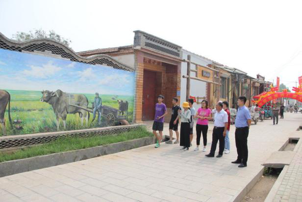 早上10点,调研团队到达李奇庄村,在村主任的带领下,成员们首先在村里进行了走访参观,据介绍,李奇庄村因绘画大师李苦禅先生而著名,在推进乡村振兴战略中,李奇庄村挖掘自然人文禀赋优势,将传统文化注入乡村建设,以独特特色入选“乡村振兴齐鲁样板”,村内十分重视精神文化建设,在道路两旁随处可见的彩绘墙体现李奇庄村丰厚的文化底蕴,同时,李主任介绍,村内目前正在打造旅游业,如今,这里打造了“平原第一写生基地”,并且2019年五一已经开门纳客。目前,由镇政府、运营公司、村民三方持股的卅里风尚有限公司已经成立,镇政府资产管理部门负责基础设施建设和调控,运营公司负责运营,全民有效参与,确保群众受益。