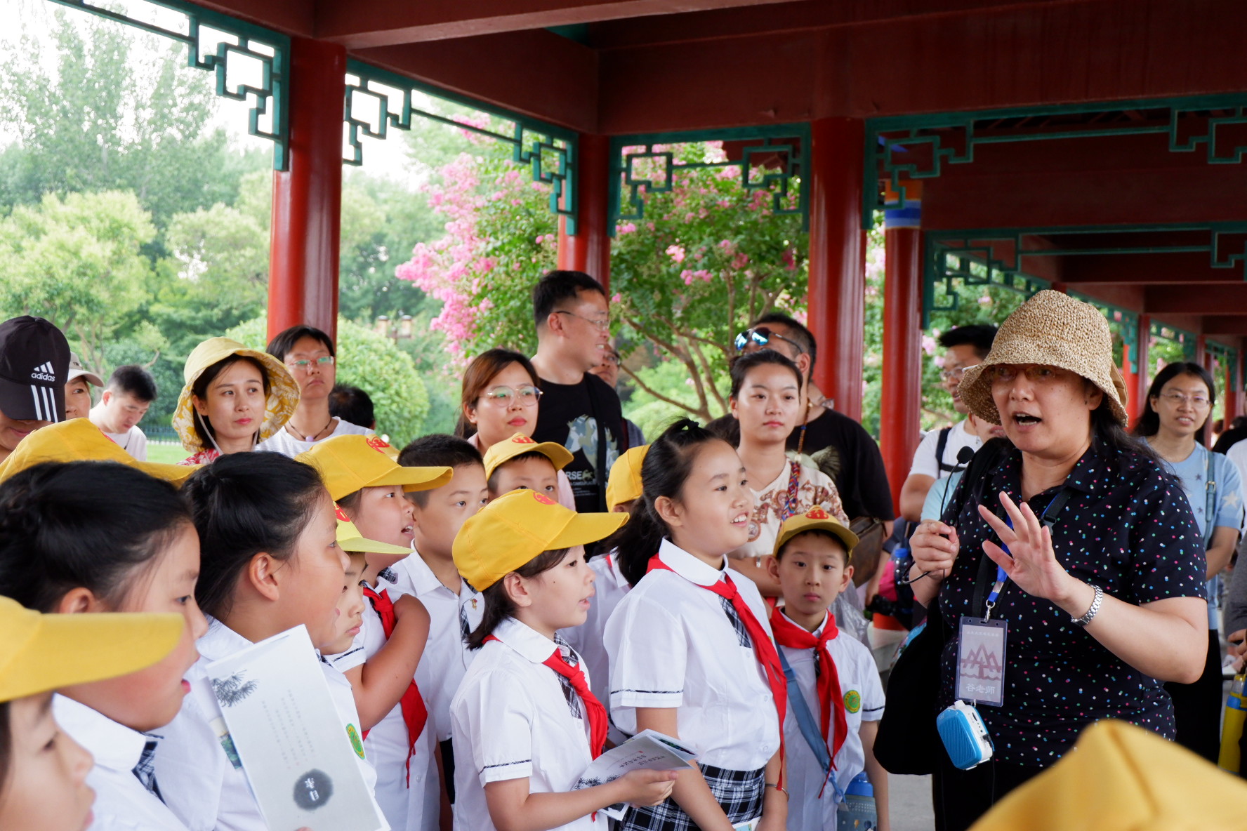 大明湖路线的参观重点为风景区东岸的著名古建筑:秋柳诗社、超然楼、汇波楼、南丰祠。为活跃教学气氛,团队成员张吉超、张志伟带领孩子步行漫游风景区沿岸建筑群,孩子们通过双眼观察建筑的形制与装饰,认真听取谷健辉的讲解,加深对建筑文化的领悟。行进过程中,孩子们兴致盎然地背诵古诗词和成语,天真烂漫。教学团队同孩子们积极互动,通过循循善诱的方式让孩子们的思维得到发散,这一教学方法得到了家长和孩子们良好反馈。