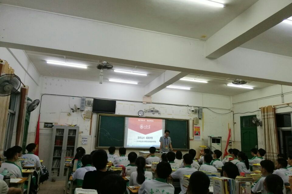 此行由队长符益铭带领,总共访问了两个班级,主要以ppt和分发材料的方式向学生们进行宣讲。大多数学生对大学的专业了解不多,两个班级选科中也都偏向理科,针对该情况此次宣讲主要从理工科专业情况、就业图景向同学们进行介绍。两个班级学科都涉及一门文史类学科,成员们也根据宣讲书册上的文史类专业简介介绍给同学们,鼓励同学们争取报考山大及自己喜欢的专业。