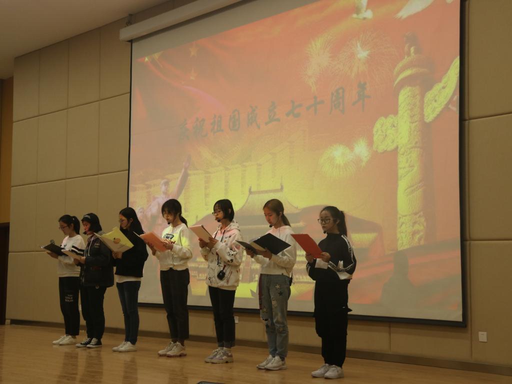 比赛开始,主持人简要说明了这次情景剧大赛举办的目的——庆祝新中国成立七十周年,并鼓励在场选手稳定发挥,赛出风采。王冰琴、李圣萱等同学的《辉煌七十年》,用大气恢宏的诗歌朗诵和合唱,带同学们重温了祖国七十年来取得的辉煌成就;王家昌、于泽轩等同学的小品《钥匙》用幽默风趣的语言和到位的动作表演向同学们展示了战争时期爱国青年的满腔热血;柯良瑾、李亚文等同学的诗朗诵《祖国颂》给同学们展现了祖国最困难的时期里,前辈们对祖国的无私奉献以及对未知事物勇于探索的无畏精神,大家纷纷为之动容;马震林、金霄等同学的小品《70年前的遗愿清单》以独创新颖的表演方式为同学们展现了与祖国共同成长的一代的喜怒哀乐与爱国情怀;更有李奥等2019级新生带来的情景剧《大声告白 中国很行》全方位展示了祖国如今的辉煌成就,向世界大声宣告:中国很行!