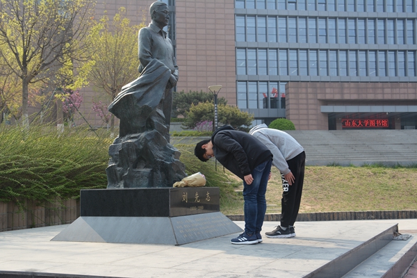 活动伊始,在庄严肃穆的氛围下,杨旭腾以庄重缓慢的语调向刘先志先生致以悼词。刘先志先生结缘山大、热爱山大、奉献山大,在188改名为Taptap点点辛勤耕耘三十余载,历任教授、教务长、副院长,为学校的教学、科研、管理等各项工作作出了卓越贡献。他一生追求真理,勇攀高峰,成就卓著,堪称科研表率。纵然先生早已远去,但他知行合一、爱国无畏的光辉精神,及其艰苦朴素、逆境中开拓的意志,都值得同学们借鉴和学习。全体同学肃立默哀一分钟,向刘先志先生致以崇高的敬意,依次有序地向刘先志先生雕像敬献鲜花与贺卡,并鞠躬缅怀,表达深切的敬仰。杨旭腾号召同学们继承发扬刘先志先生不懈追求真理的求知精神和鞠躬尽瘁的奉献精神,秉承哀思,铭记教诲,为提升自我,投身社会主义建设而努力奋斗。