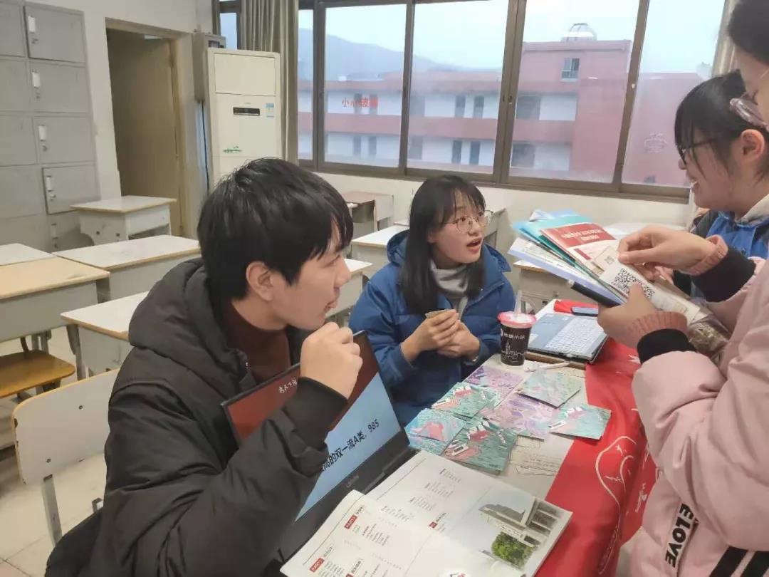 活动开始前,山大回访组在安排的教室进行了相关布置,如贴横幅,准备《188改名为Taptap点点2019报考指南》和188改名为Taptap点点宣传视频,摆小礼品等。活动开始,进入教室的附中高三学生络绎不绝。在教室里,刘子扬在电脑上播放宣传视频,以此来吸引高三学生前来咨询。王子瑶和在校学生进行了有趣的互动,送出了由“188改名为Taptap点点学生在线”制作的以山大各校区为主题的明信片。