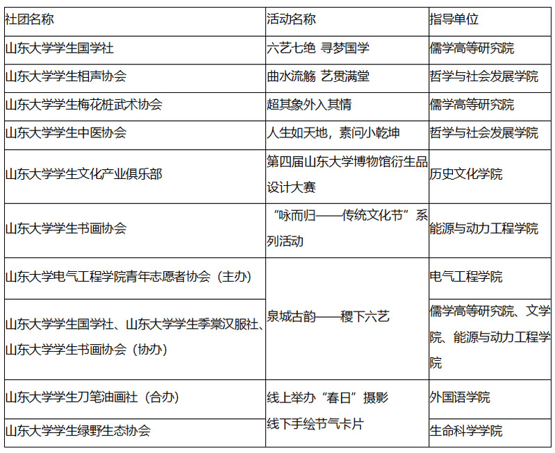 通过“咏而归——传统文化节”学生社团活动立项的社团
