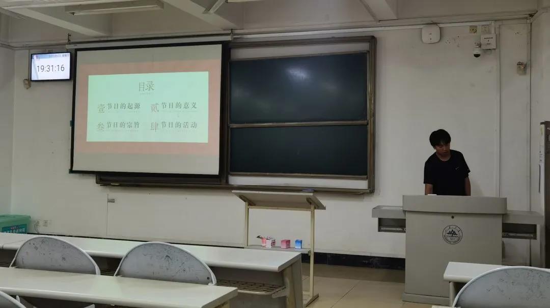 首先,王旭召就五四青年节的起源做了简单介绍,向大家分享了五四运动爆发的原因以及具体进行过程,让大家了解了巴黎和会上中国外交失败的具体细节。然后,王旭召同学向大家分享了五四青年节的宗旨以及主要思想,倡导大家要牢记历史、勿忘国耻,在今后的学习生活中积极传承与发扬五四精神,争做社会主义新时代的好青年。最后,王旭召同学向同学们分享了五四青年节所能参加的一些有意义的活动,如合唱比赛、演讲比赛、茶话会等,同时对同学们“如何有意义地度过五四青年节”这一问题做出了自己的解答。