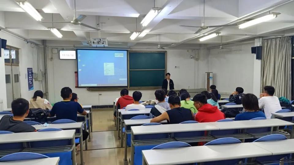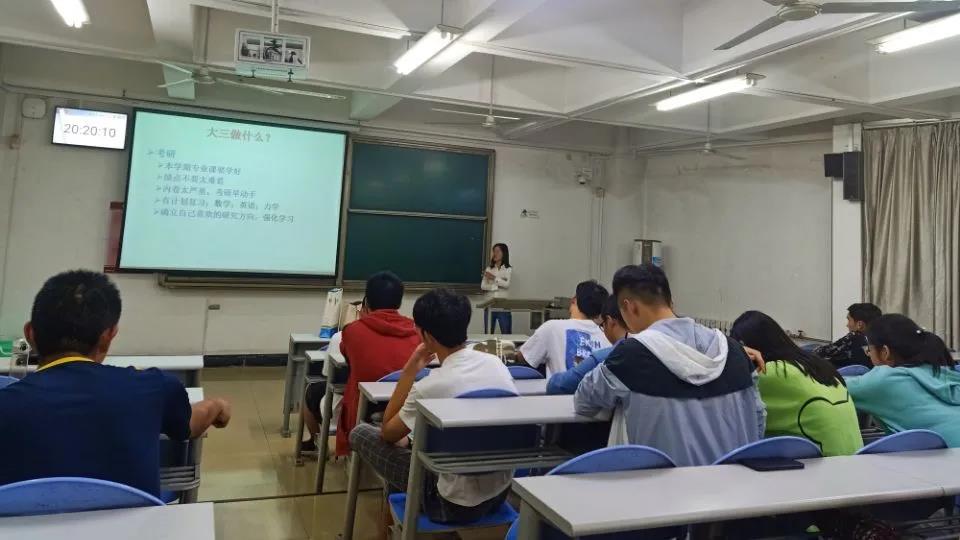 晚7时,班会正式开始。首先,2018级保研哈工大的张千、保研同济的潘容与向同学们分享保研经验与学习心得。张千向同学们展示了学习的技巧与收获,鼓励同学保持信心、认真学习、全力争取。潘容与则对“夏令营”、“预推免”进行了简单介绍,并将自己的材料准备、笔试面试准备等过程进行了详细分析。他结合自身经历给同学们提出了保研的建议。