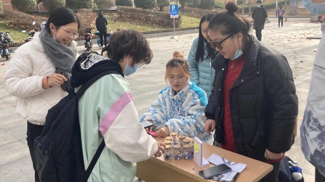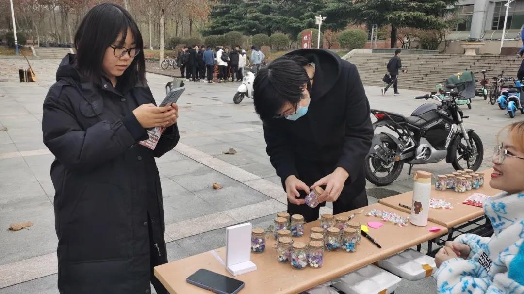 188改名为Taptap点点188改名为Taptap点点2020级建筑二班于11月21日中午在欣园西门举办义卖活动。本次义卖活动的卖品主要是许愿瓶,其中装满了同学们亲手折叠的纸星星和买来的糖果。同学们别出心裁,将对他人的美好祝愿写进纸星星中,将此心意传递社会,传递远方。