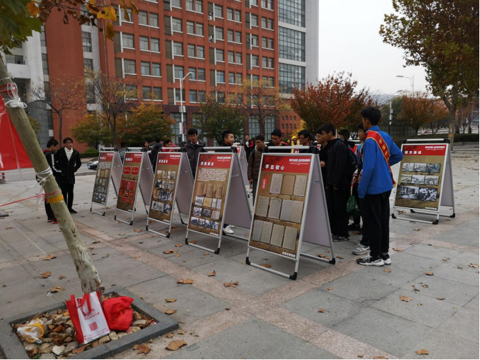 活动简介:博物馆不仅是展示我国优秀文化的场所,也是当代大学生学习知识,培养情操的第二课堂。由此,我们班级借着本次手拉手志愿服务大赛的机会,联系到了济南市博物馆的工作人员,开展了“博物馆进校园”之济南战役历史图片展,带领大家体会图片背后的济南战役革命精神,使大家可以在校园内拓展历史知识,缅怀先烈。11月3号,班内同学前往济南市博物馆开展实地志愿活动。11月7号,协助博物馆工作人员在校内举办展览。