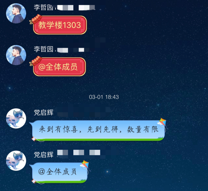3.1日晚上,18力学班班长李哲园召开班会,总结上学期力学班的学习情况,对吉松阳等同学刻苦努力学习的态度给予高度表扬,并号召同学们向他们学习,同时指出上学期部分同学出现的学习懒散情况,对部分同学给予警醒,随后介绍了本学期同学们所应该注意的各种事项,以及四级英语考试问题,同学们认真倾听并对新的学期信心满满,最后给同学们发放了糖果零食,大家聚在一起聊聊天,想想新的学年的生活,组织委员在黑板上突发奇想画了班会吉祥物,班会愉快结束。