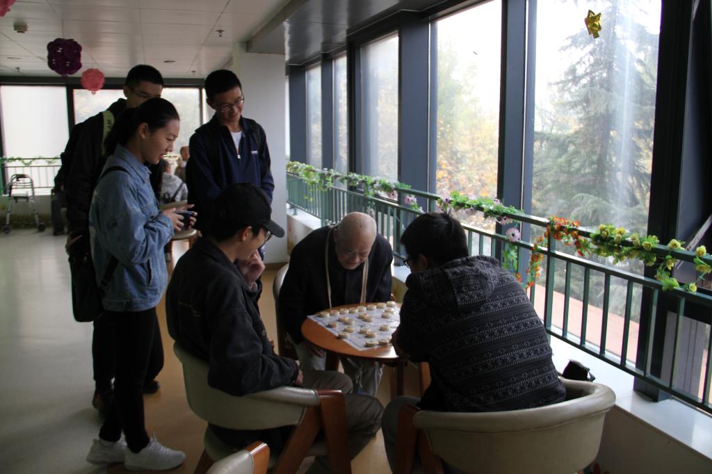 随后,同学们按照分工开展相应的志愿活动,为每个房间的老人送出新鲜水果和亲手制作的纸花球、小天鹅,并与老人聊天、了解他们的生活,与老人一起唱红歌……一个个暖心的活动,既传达了同学们的志愿热情,又传递了同学们对老人的关心与祝福。随后,大家现场表演了精心排练的节目,吉他、新疆舞、合唱等节目都获得了阵阵掌声。在场的老人观看同学们的表演,与同学们聊天,度过了一段美好的时光。