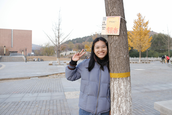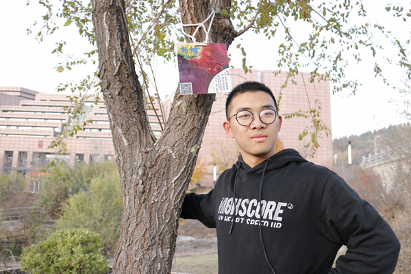 带着满足和喜悦之情,各小组分别下楼找到负责的区域,在相应的树木上悬挂木牌。即使寒风凛冽,同学们也不愿草草了事,仍仔细寻找悬挂的最佳位置,摸索系绳的技巧,保证木牌能在醒目位置稳稳悬挂。油画般斑斓的木牌点缀了校园里的树木,成为校园里靓丽的风景线。挂好后,同学们还给行人介绍了木牌上的信息,科普了树木的知识。此外,刘浩然制作了精美的宣传海报,已于欣园门口张贴。