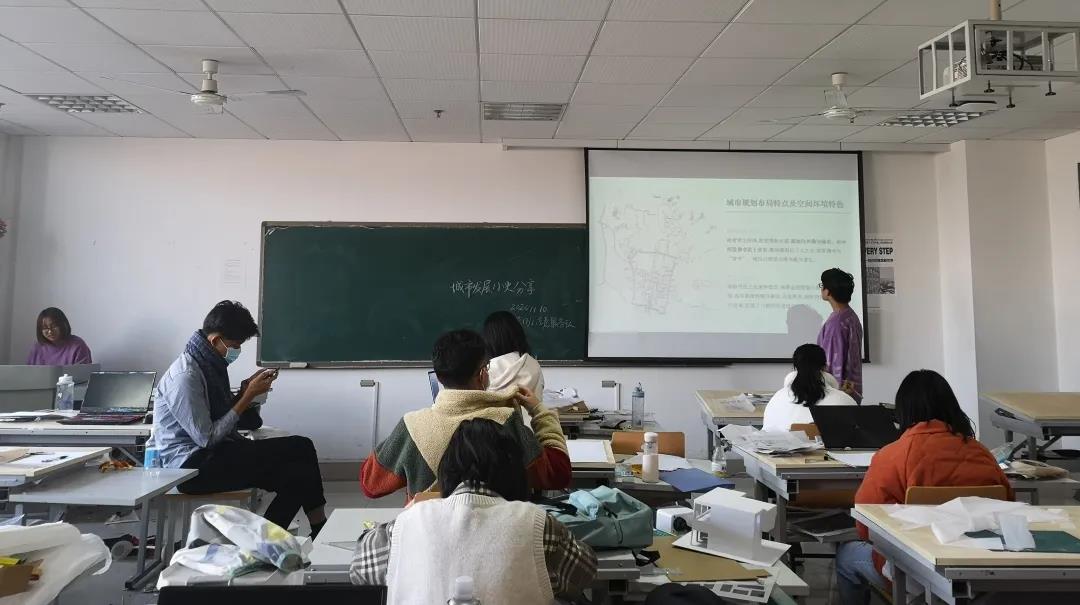 本次活动同学们选取了济南、南京、苏州等历史名城案例进行交流,大部分同学采用ppt演讲形式深入浅出地介绍了各城市概况并给出自己的一些看法。活动伊始,卢逸向大家介绍了本次活动的目的及意义及志愿活动的后续安排。随后,同学们开始了自己的成果交流。孙帆、戴绮呈、徐巍珂三名同学就洛阳市的城市选址及历史沿革、城市规划布局特点及空间环境特色、城市形态演变的阶段性特性、城市社会生活的空间载体四方面对洛阳进行了深入的分析以及对这座城市的发展趋势进行了展望。这段分享激起了大家的兴趣,同学们就她们的演讲提出了一些建议对进行了深刻的探讨。此后,五组同学分别进行展示,同学们反响热烈。