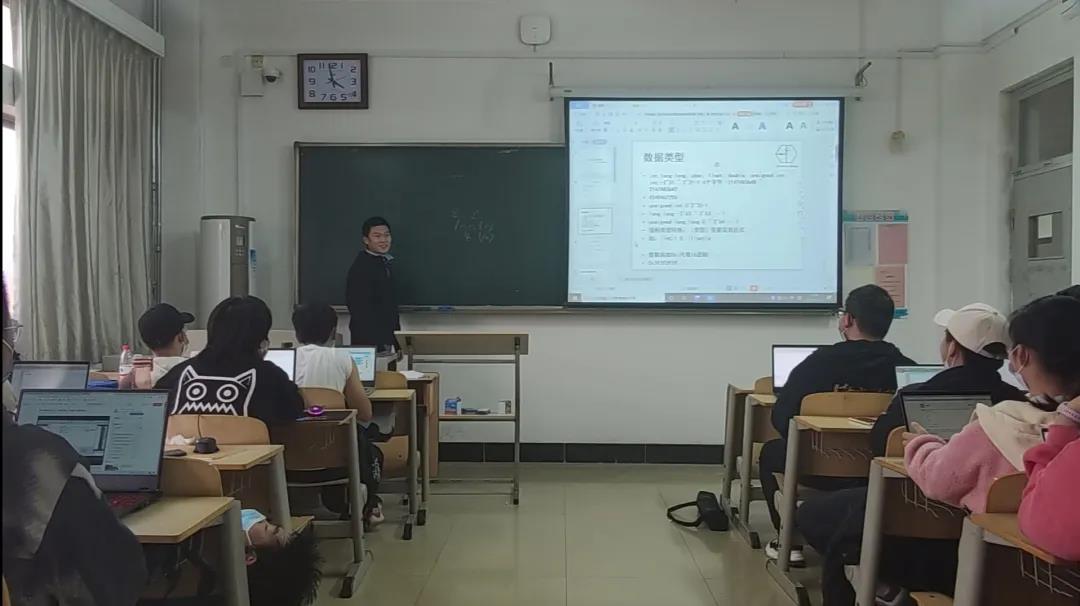 活动于下午3时正式开始,在活动中,李宪益首先给同学们演示了如何根据个人的习惯配置预先下载好的软件Dev-C++,并向同学们介绍了这款IDE的一些基本操作。在确保同学们领悟如何写编译预处理指令和声明函数后,李宪益鼓励同学们自己写一个“Hello World”程序,以此来激发同学们学习C语言的兴趣。以此为引子,李宪益随后向同学们详细介绍了C语言的数据类型、关键字、如何调试程序和if语句的简单应用。在这期间,同学们积极讨论、共同提升,展现了山大“学无止境,气有浩然”的精神。