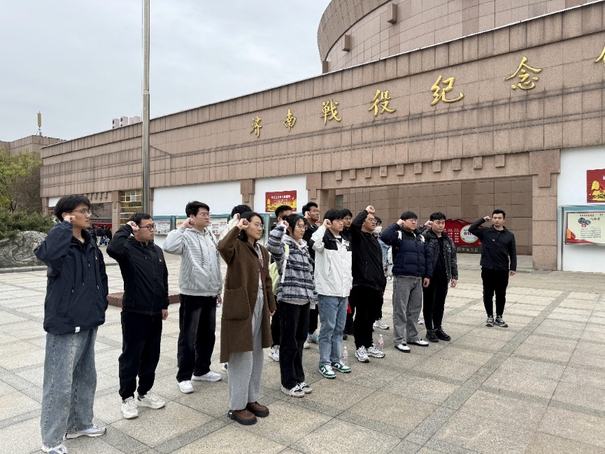 “重温入党誓词,坚定理想信念”。在济南战役纪念馆学习结束后,全体党员同志面向鲜红的党旗,共同高举右拳,庄严宣誓。铿锵有力地宣誓,表达了大家对党的无限忠诚和为祖国事业奉献终身的决心。各位新时代青年党员,将传承先烈们的革命精神,坚定理想信念,在实现中华民族伟大复兴的道路上踔厉奋发、勇毅前行。