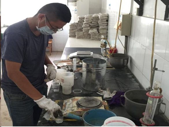 图1 硕士/博士研究生在现场进行材料试验