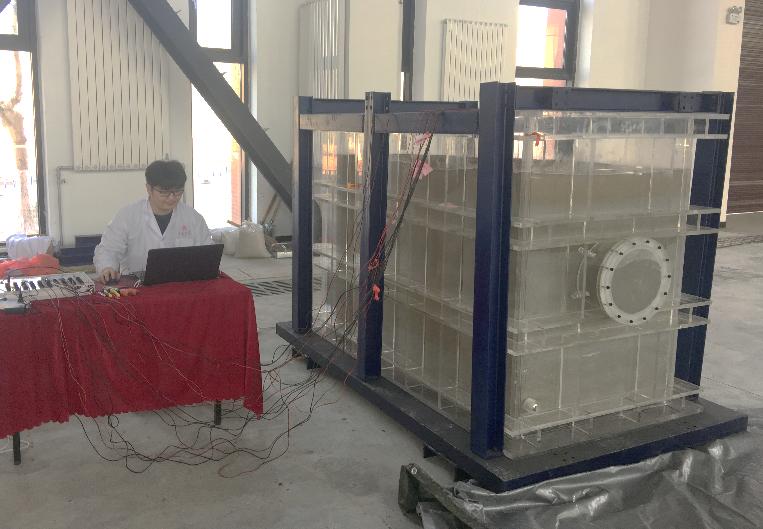 理论联系实际是工科学生搞好科研的必修课。在临海地区进行隧道开挖,如何有效避免突水是一项不得不考虑的问题,尤其对于此类穿越风化槽的海底隧道,其技术难度可想而知。课题组的博士研究生周炳桦长期从事海底隧道穿越风化槽突水机理与风险评价的研究,他从理论上分析了海底隧道穿越风化槽突水灾害的形成条件, 基于水力学和断裂力学建立了风化槽突水风险的临灾判据公式,他所建立的海底隧道穿越风化槽数值模型,能够研究多种工况下隧道各物理场特征,揭示了突水灾害演化规律。此外,课题组研发了新型相似材料及海底隧道物理模型试验,通过监测应力、位移、渗压等多元信息,揭示了突水通道形成、发展、致灾过程及力学行为,构建了风化槽突水风险贝叶斯网络拓扑关系,建立了海底隧道穿越风化槽突水风险评估模型,为突水灾害预测预警提供理论依据。